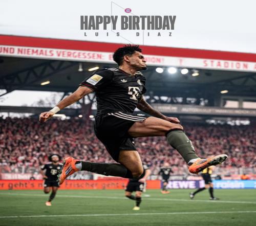 体育播报1月13日宣 今天是拜仁边锋路易斯-迪亚斯的29岁生日,拜仁官方社媒为他送上祝福。