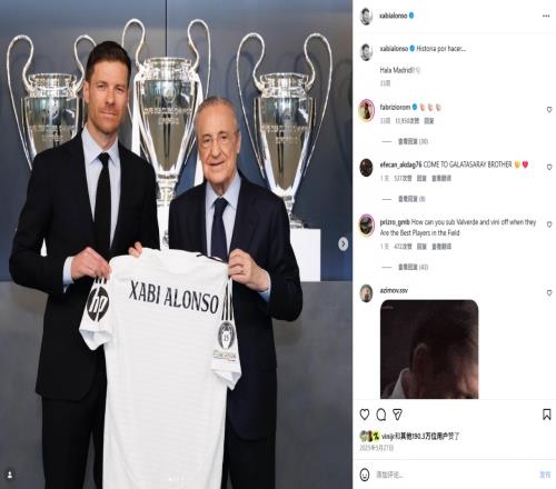 阿隆索社媒置顶仍是签约皇马时的动态,并配文:历史正待书写...