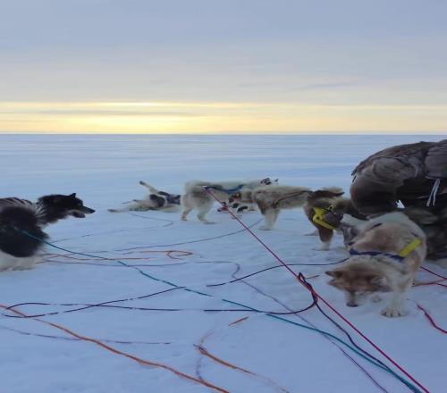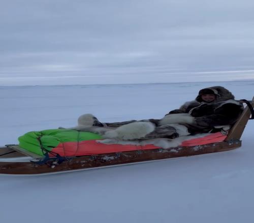 超大号兹拉坦44岁伊布北极度假,裹得严严实实坐狗拉雪橇